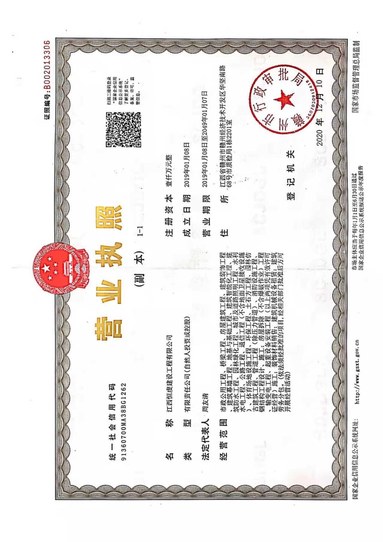 江西恒虔建设工程有限公司,成立于2019年01月08日,法定代表人:周友清,注册地位于江西省赣州市赣州经济技术开发区华坚南路68号市质检局1栋2201室,经营范围:市政公用工程、桥梁工程、房屋建筑工程、建筑装饰工程、建筑幕墙工程、地基与基础工程、建筑智能化工程、建筑防水工程、园林绿化工程、城市及道路照明工程、水利水电工程、公路工程、通信工程(不含地面卫星接收设施)、体育场地设施工程、环保工程、土石方工程、园林仿古建筑工程、管道工程(除压力管道)、消防设施工程、钢结构工程设计、施工;房屋拆除(不含爆破作业)工程、输变电工程、起重设备安装工程(以上两项凭有效许可证经营)施工:装饰材料销售:建筑机械设备租赁;建筑劳务分包。(依法须经批准的项目,经相关部门批准后方可开展经营活动)。